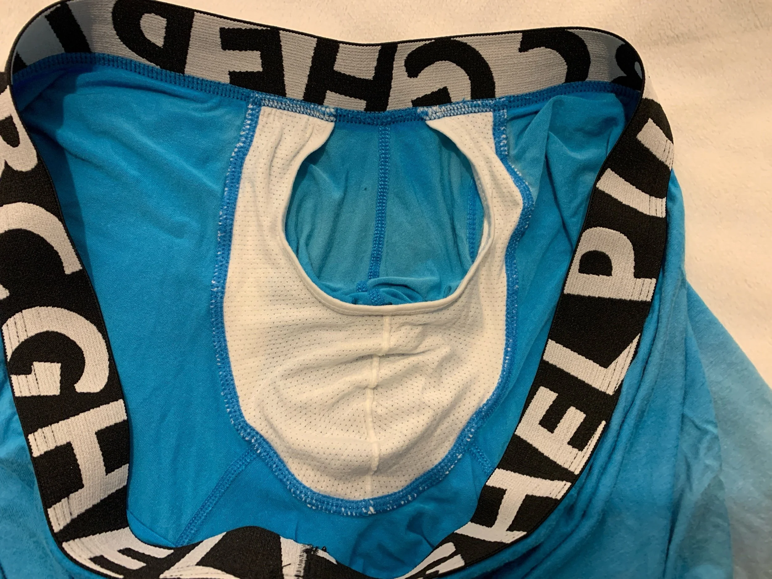 Well worn blue pouch boxer trunks XL . These boys have been my fave but time to let em go. They have been worn to death, you can see the faded marks in the legs, the crotch the arse.. where the sweat stains and friction over time have caused them to fade … you can see the line of my ass crack on the back. They’ll be refreshed before sending with Willy dribbles, sticky stains and a load before sending so they don’t disappoint.